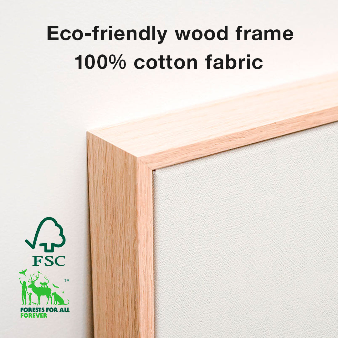 Eco-friendly materials: 100% cotton canvas mounted on solid pine wood stretcher frame with FSC ecological certification.